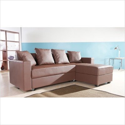 ADC-SJO-SEC-PUX-COF Multi-functional contemporary sectional adds comfort and style to your living room. European style with sleek design inspires a fresh look for your home. Sectional designed with maximum comfort in mind. Furniture upholstered in durable PU leatherette with detailed stitching. Frames are made of durable tropical solid wood. Features storage sectional sofa that can be easily converted into bed position. Other color finishes available. Features: -Convertible sectional sleeper sofa. -Coffee vinyl leatherette upholstery. -Leg finish: Black. -Frame construction: Solid wood. -Contemporary style. -Huge storage areas underneath both sofa and chaise seats. -Easily converts into sleeper sofa position within seconds. -Assembly required. -Manufacturer provides one year parts replacement warranty. Specifications: -Sofa dimensions: 28.74'' H x 53.94'' W x 32.28'' D. -Chaise dimensions: 28.74'' H x 31.50'' W x 59.45'' D. -Sleeper sofa dimensions: 16.93'' H x 74.02'' W x 54.33'' D.