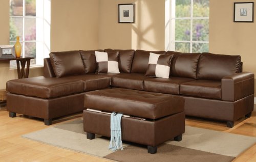 3 Pieces Sectional Sofa Bonded Leather Match/Walnut Finish by Poundex Specification