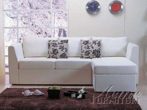 you looking for low-priced Sectional Sleeper Sofa with Pull-Out Ottoman and Pillows Off-White Linen?